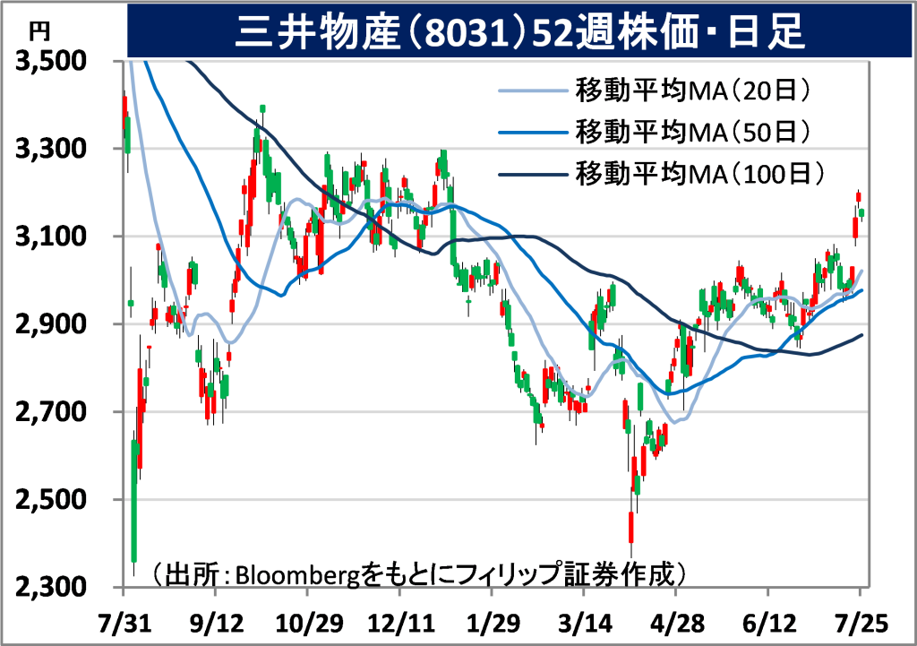 ・2026/3通期会社計画は、当期利益が前期比14.5%減の7700億円、年間配当が同15円増配の115円。資源価格下落と円高を含めて保守的に見積もったと述べた。日米関税交渉の合意内容には、日本側が関税ゼロのミニマムアクセス(MA)米の枠内で米国からのコメ輸入を即時に75%増やすことが含まれた。同社は米大手穀物商社との提携関係から米国産穀物輸入の取り扱いで優位にある。