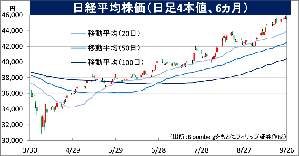 10/4に自民党総裁選が行われる。少数与党の状況にあっても、自民党総裁が次期首相となる可能性が高いことに変わりはないとみられることから、日本の経済・社会の舵取りの変化とともに日本株市場の銘柄物色の動きにも大きな変化が起こる可能性がある。