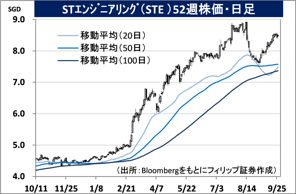 ・8/14発表の2025/12期1H(1-6月)は、売上高が前年同期比7.2%増の59.16億SGD、EBIT(利払前税引前利益)が同15.1%増の6.02億SGD。商業航空宇宙、都市化ソリューション、防衛・公共セキュリティの各事業が堅調に推移。新規受注高が49%増の91億SGD、6月末受注残が12%増の312億SGD。