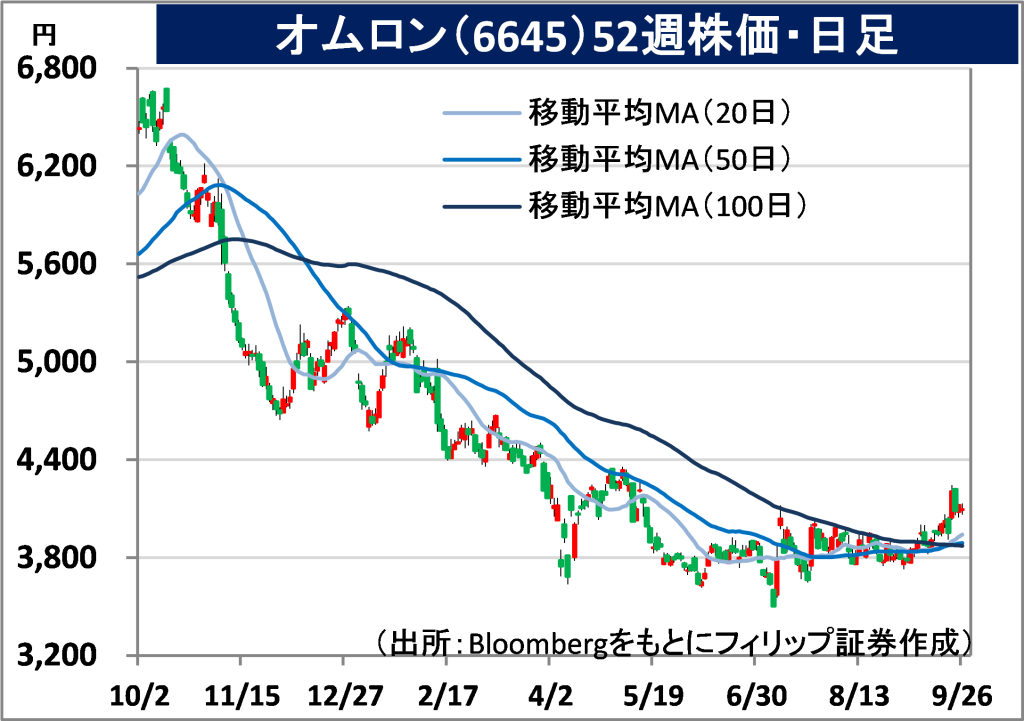 ・8/6発表の2026/3期1Q(4-6月)は、売上高が前期比3.1%増の1894億円、営業利益が同1.7%増の63億円。営業利益内訳は、制御機器(売上比率50%)が53%増の109億円、ヘルスケア(同16%)が70%減の14億円、電子部品が(同15%)が4億円、社会システムとデータソリューションは営業赤字。