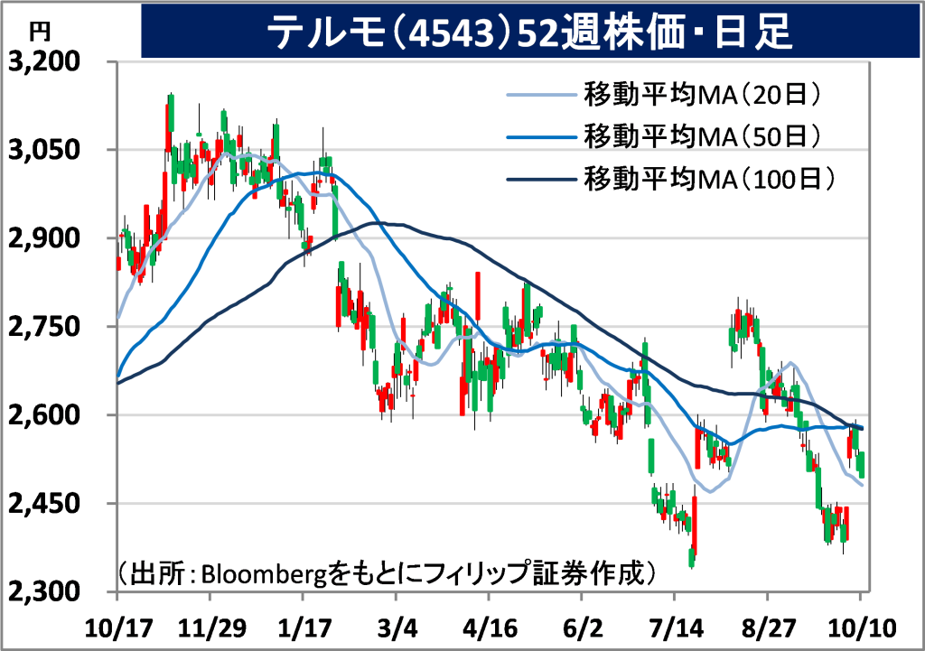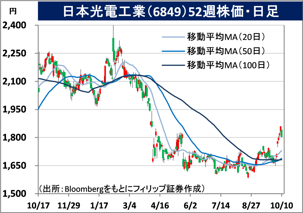・通期会社計画は、売上収益が前期比1.3%増の1兆500億円、買収の影響を除く調整後営業利益が同5.2%増の2140億円、年間配当が同4円増配の30円。自民党の高市新総裁は医療機関や介護施設の窮状に対し早急に手を打つ考えを示し、診療報酬の引き上げ前倒しに意欲を見せている。診療報酬改定により病院収益が改善すればカテーテルや人工心臓などの取扱い増が見込まれる。