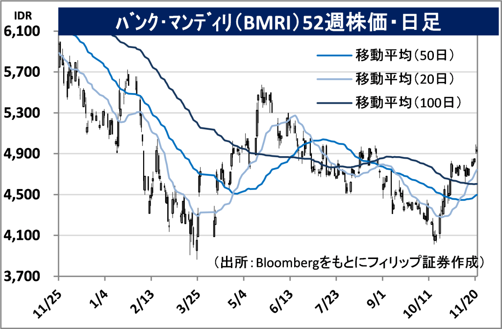 ・通期会社計画は、期末貸出残高伸び率が前期比8-10%(9M実績5.6%増)、純金利マージン(NIM)が4.8-5.0%(同4.89%)、総信用コストが0.8-1.0%(同0.73%)と従来計画を据え置いた。9月末時点で、低所得者向けマイクロクレジットの融資残高が前年同期比7%増。傘下のイスラム金融(バンクシャリア)の9Mは純利益が同9%増の5.5兆IDRと、収益の柱として成長しつつある。