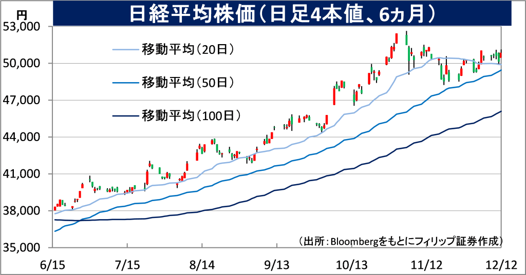 - 来週の日銀金融政策決定会合で利上げが決定された場合に「円キャリートレード」巻き戻しリスクに加え、中期的には外債から国内長期債・超長期債への資金回帰が起きて為替の円高を後押しする可能性がある。中国関連では、年内に2本の社債償還を控える中国不動産開発大手の万科企業のデフォルトリスク、および、来年2月の「春節」を控えて日中関係の悪化に伴うインバウンド消費関連の機会損失リスクも無視できない。また、半導体メモリー価格高騰に伴う電子部品・ゲーム機の製造コスト高騰も日本株にとって痛いところだ。(笹木)